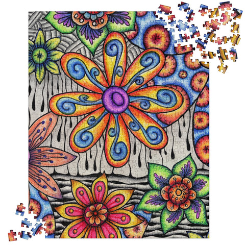 Flowers Over Dark Jigsaw Puzzle - Martin K Designs
